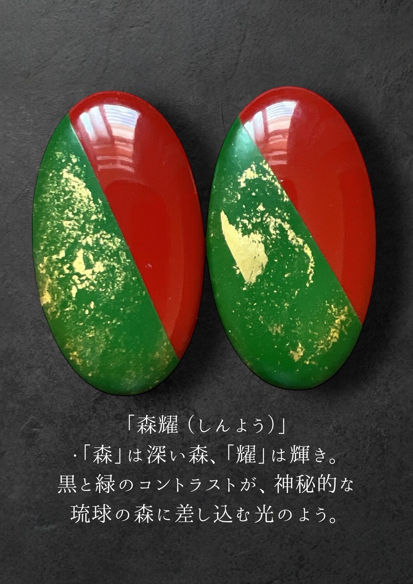 ・琉球漆器の素材をそのまま生かしつつ、アクセサリーとして身に着けやすい形に整えています。